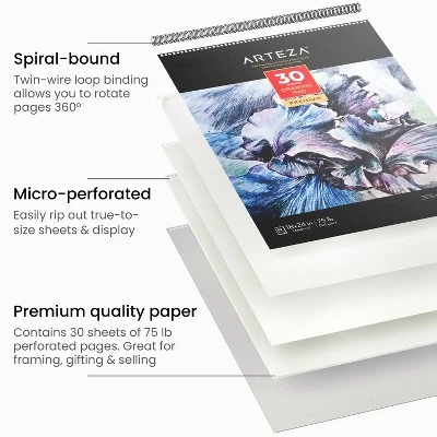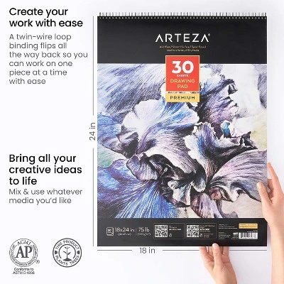 Start your next brilliant illustration with a 18”x24” Drawing Pad. This convenient spiral-bound pad provides you with 60 pages of premium drawing and sketching paper. Each off-white, medium weight, acid-free paper features a smooth and fine-tooth surface which is perfect for a variety of dry media. The premium sketch pad’s pages are held together by a 360° spiral binding that allows you to effortlessly flip through your drawings. The premium paper in this convenient drawing pad is easy to remove due to their micro-perforated edge; simply tear out illustrations as you complete them.