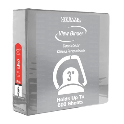 BAZIC Products® Slant D Ring View Binder with 2 Pockets, 3″, Gray, Pack of 3 | This 3 inch hard cover binder features a clear view on the front, back and side so you can customize! Each binder can be easily identified when a piece of paper with artwork or title is inserted from the opening on the top. This binder has 3 metal rings that are “D” shape, attached inside on the back of the binder, so that you can fit more documents. Sold as a pack of 3 binders.