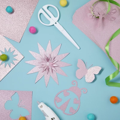- Dimensions: Each sparkle construction paper sheet measures 8.5 x 11 inches and can easily be cut, folded, and glued into your preferred size or shape
