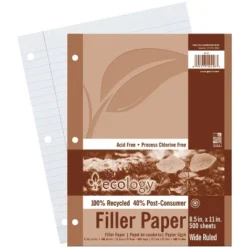 School Smart 5-Hole Punched Filler Paper, No Margin, 8 X 10-1/2 Inches, Wide Ruled, 500 Sheets