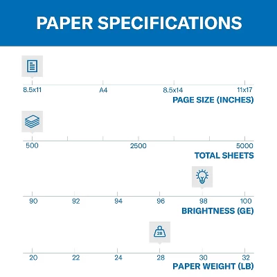 - Papr weight: 28 lbs.; 70 lb. Text. 500 sheets per ream.