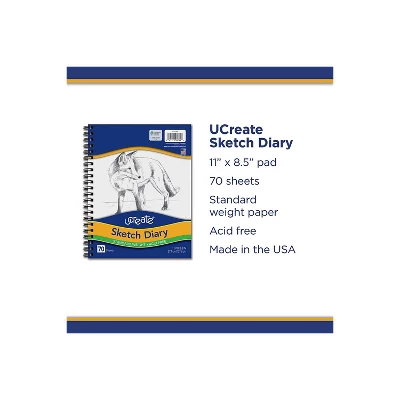 Spiral bound sketch diary deal for quick sketches and preliminary drawings. All-purpose White sulphite drawing paper spiral bound on the side. Perfect for quick study sketches and drawings. Dimensions: 8-1/2″ x 11″. 70 sheets, sketch paper. Blue chipboard cover. 70 sheets/pack. General purpose sketch paper. Acid free. Sold as 1 Each.