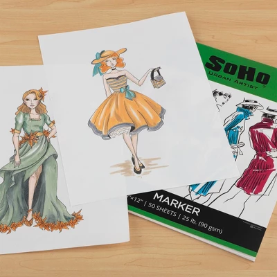 - 50 sheets of glue-bound, smooth marker paper; 24 pound (90gsm); accepts multiple layers of color and blending